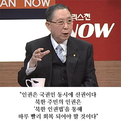 이에 이종윤 원로 목사님은 지난 3월28일(금) CBS TV 시사프로그램에 패널로 참석해 북한인권법이 반드시 제정되어야 하는 이유에 대해 인권은 국권인 동시에 신권이므로 북한 주민의 인권은 북한 인권법을 통해 하루 빨리 회복되어야 할 것이라고 했다.
