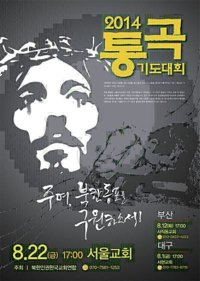 한국 교회가 깨어나 북한 동포의 구원과 이 민족의 죄악과 고난을 놓고 통곡하는 기도와 부르짖음이 8월22일(금) 오후5시 서울교회 본당에서 울려 퍼진다. 이번 기도회를 개최하고 있는 북한인권한국교회연합(상임대표 이종윤 원로목사)은 “북한인권법 제정 촉구와 북한 동포 구원을 위한 ‘2014 통곡기도대회·통일광장기도회’를 8월 1일 대구 서현교회를 시작으로 12일 부산 사직동교회, 22일 서울교회에서 계속하여 진행하고 있다.