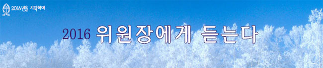 2016년 새해를 우리에게 허락하신 주님께 감사드리며 성도님들에게 주님께서 주시는 소망이 넘치는 한 해가 되기를 소원하며 새해를 맞이하여 성도님들과 함께 다짐하기를 원하는 몇 가지를 나누고 싶습니다.