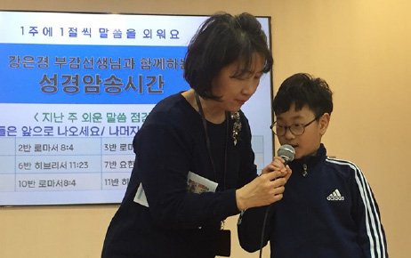 “이번 주 성경암송을 한 친구들 나와서 암송해 볼까요?” 성경암송을 하는 어린이들의 또랑또랑한 목소리가 천국의 노래같습니다. 선생님들과 친구들이 박수로 화답합니다.