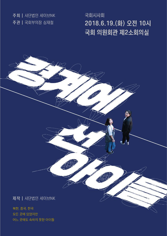 '중도입국 탈북청소년'이란 중국에서 팔려간 탈북여성들이 낳은 아이들로 한국 입국 3만2천여명의 탈북민 중 청소년 숫자의 절반 이상에 해당하며 그 숫자가 점점 많아지고 있어 새로운 사회문제로 대두되고 있다. '세이브NK'가 중국 현지 촬영 등을 통해 이들의 휴먼스토리를 담았고 국제 다큐멘터리·인권 영화제에도 출품 예정이다. 많은 참여와 관심 바란다.