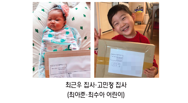 오늘 보내주신 선물 잘 받았습니다. 너무 감사해요. 귀하게 잘 쓰고 먹을께요. 기찬이와 기언이가 너무 좋아하네요^^