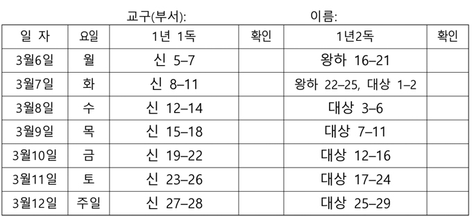 전교인 성경읽기표(2023-3-05)