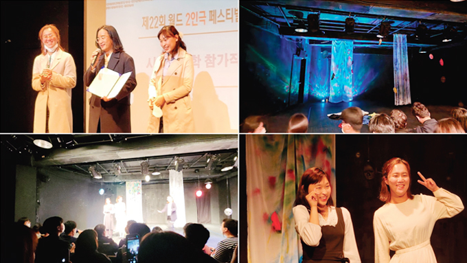 호산나대학(연극치료 공연제작 프로젝트팀)은 <물속에 갇힌 앨리스> 공연으로 지난 11월 26일(토) 서울 대학로 민송아트홀 2관에서 열린 ‘월드 2인극 페스티벌’ 시민 참가작 부문에서 대상의 영예를 안았다.