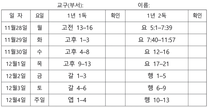 전교인 성경읽기표(2022-11-27)