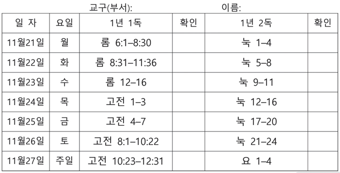 ㆍ2024 전교인 성경읽기표(2024-11-3)