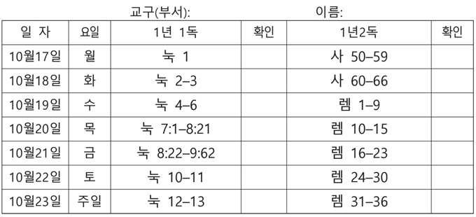 전교인 성경읽기표(2022-10-16)