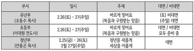 우리의 다음 세대들이 이번 겨울성경학교·수련회를 통해 받은 은혜를 잘 간직하고 성장할 수 있기를 기도 부탁드린다.