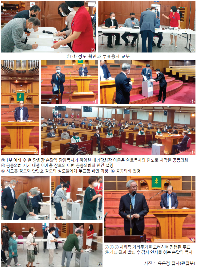 현 방역 수칙 상 모든 성도가 한꺼번에 모일 수 없어 부득이 1, 2, 3부 각 예배 시마다 나누어 투표하는 방법으로 성도들의 위임 청빙 찬반 의사를 물은 결과 총 투표수 386표 중 헌법상 결의 요건인 2/3 이상인 369표의 찬성으로 통과되었고 이제 서울강남노회 올 가을 정기회에서 정식 허락을 받게 된다.