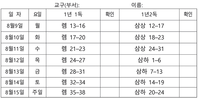 전교인 성경읽기표(2021-08-08)