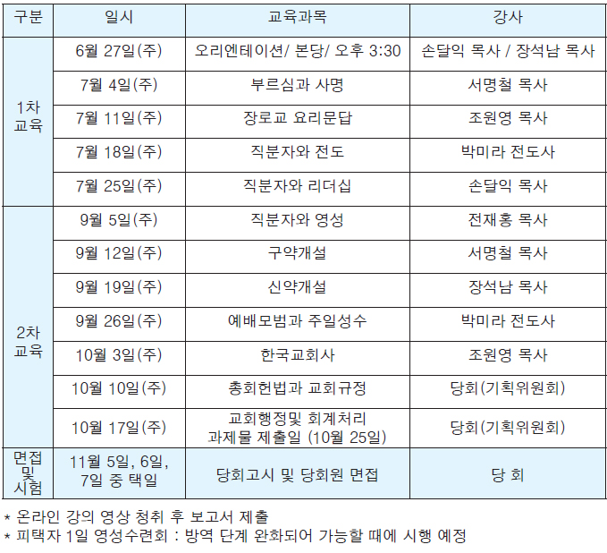 2021년 피택집사 및 피택권사 교육일정