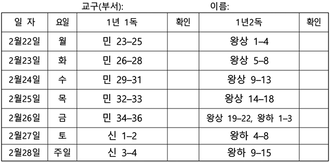 전교인 성경읽기표(2021-02-21)